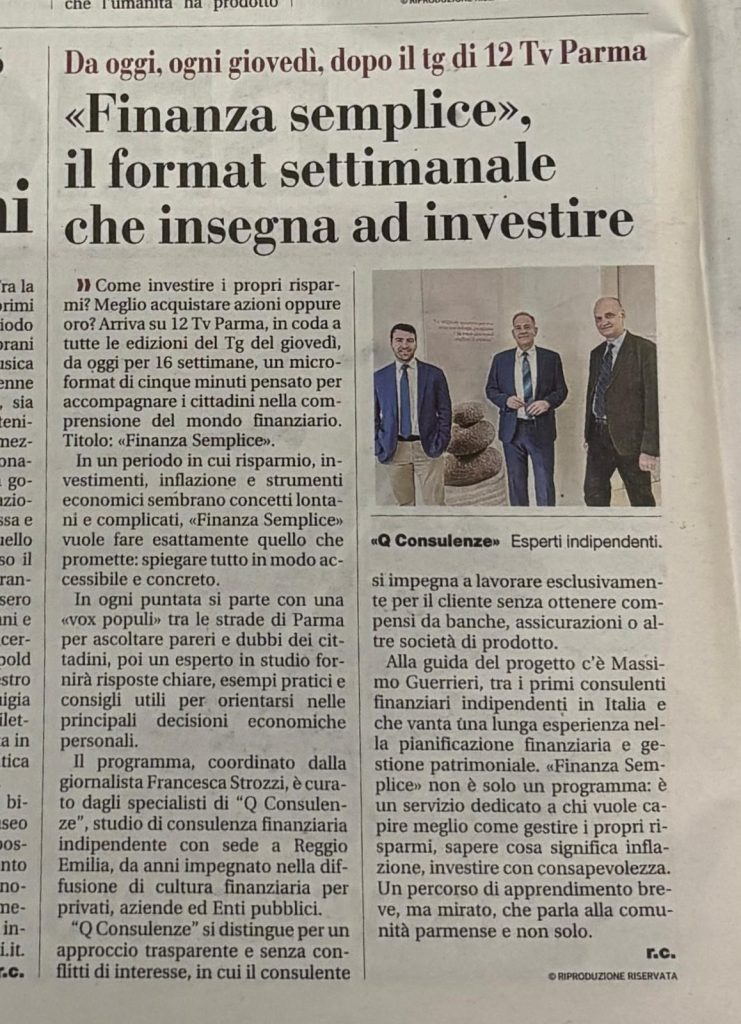 Da giovedì 5 marzo va in onda la rubrica “Finanza Semplice” curata dallo studio Q Consulenze Finanziarie, in coda a tutte le edizioni del Tg del giovedì su Tv Parma.