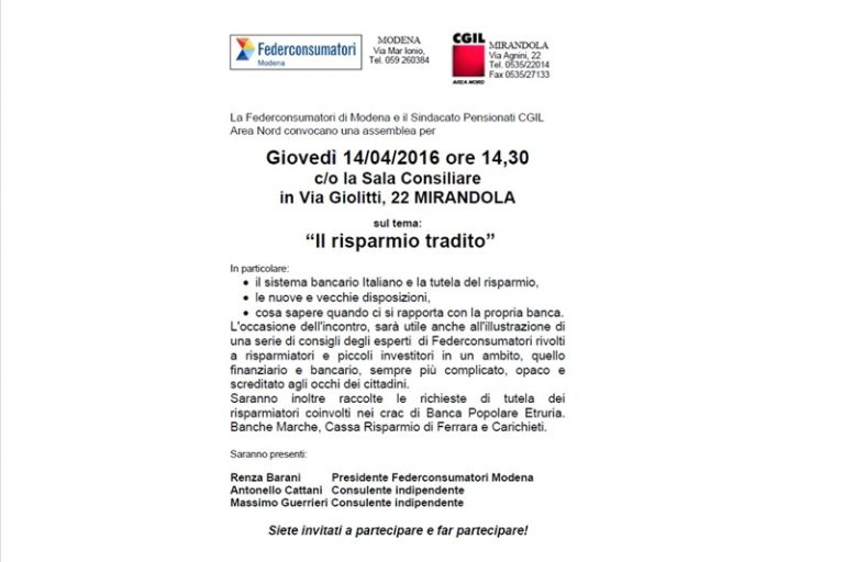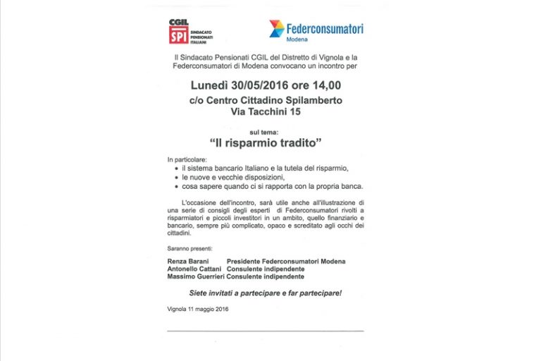 Lunedì 30 a Spilamberto: il risparmio tradito