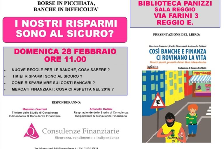 Domenica 28 febbraio ore 11.00 . Sala Reggio – Biblioteca Panizzi Cosa bisogna sapere quando si va in banca? Presentazione del libro “Cosi’ banche e finanza ci rovinano la vita”…