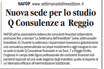Il 17 ottobre si inaugura la nuova sede dello studio Q Consulenze Finanziarie, in via Sani 7 a Reggio Emilia. Scarica l’allegato